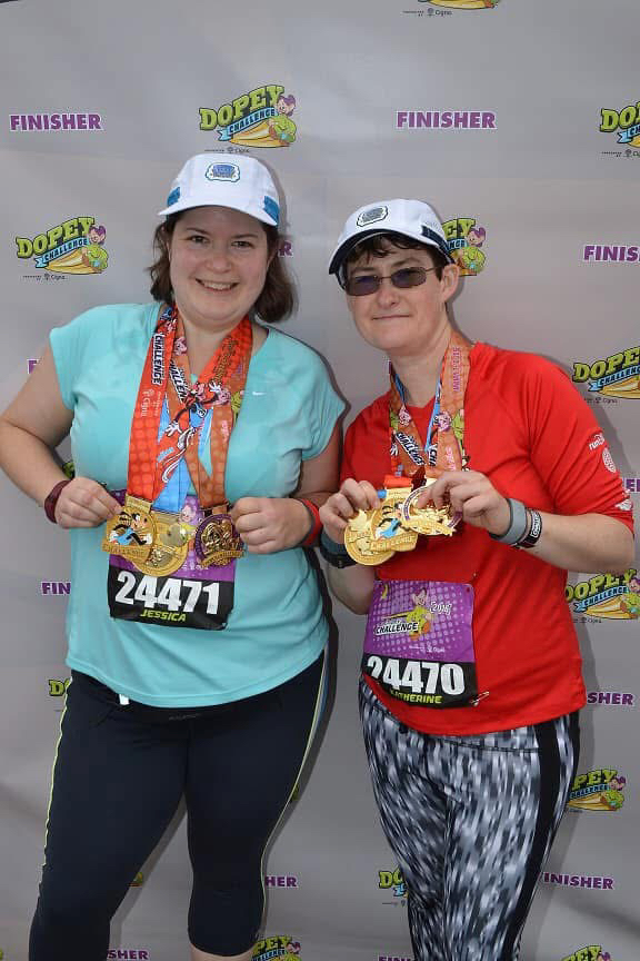 So I will just share these two pictures. Our Dopey Challenge Finisher picture and the Marathon medal. Reflections of what is now really 11 years of running properly – sometimes more not running than running – might still come. But as I sit on the sofa today feeling frustrated that I got flu just as I was settling into quite a nice exercise routine, let’s just let this be a reminder that sometimes it is fun to do the impossible.