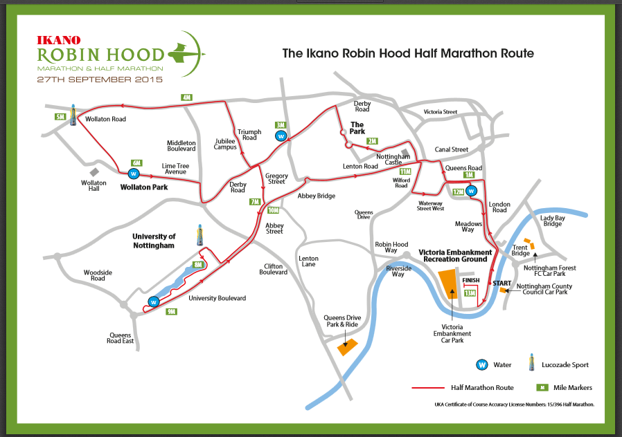 It was a cold foggy morning in Nottignham and standing in the starting section next to the river Trent was a little chilly. 9.30am came and the elite runners set off. Slowly the rest of us made our way, section by section, to the start line. Off I went pressing the start button the the Garmin as I crossed the line just to be met with a beep and then a blank screen. Bother! No intervals for me then. I’d have to go by feel – something I have no experience of really.