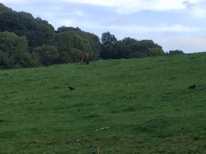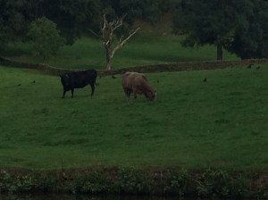 I thought I could wait there for Kath. She was going fast when I last saw her so she couldn’t be far off (Yes that was over 2 miles ago but still). I didn’t have to wait long at all but while I did I watched some cows and their calves in the field opposite and then as we started back we saw the little calf frolicking in another field. Lovely to watch.