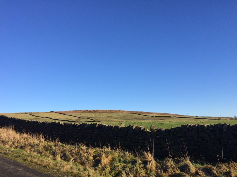 in the car – it’s not. Further along there were a couple of sheltered patches where I picked my way through on the grass verge – ‘look ahead, relax, keep moving’. A left turn took me back down into the village. I wasn’t looking forward to the down because I’m not great with down at the best of times and add slipperiness to that… well. But it was ok. I kept to the sunny side and in spite of a few patches of ice I only stopped a couple of times to stand in for cars and take a few pictures. I was about to stop once, running out of mental strength to keep going through an icy patch so I said out loud ‘Stupid girl, you’re fine!’ before realising that there was someone walking just in front (hadn’t seen her because of the bend in the road). I got a bit of an odd look as I went past. At the bottom of this slope I was back on part of our sheep loop and I felt more confident – more like I knew the road and which bits to avoid. I even ran most of the way up Ilkley Road.