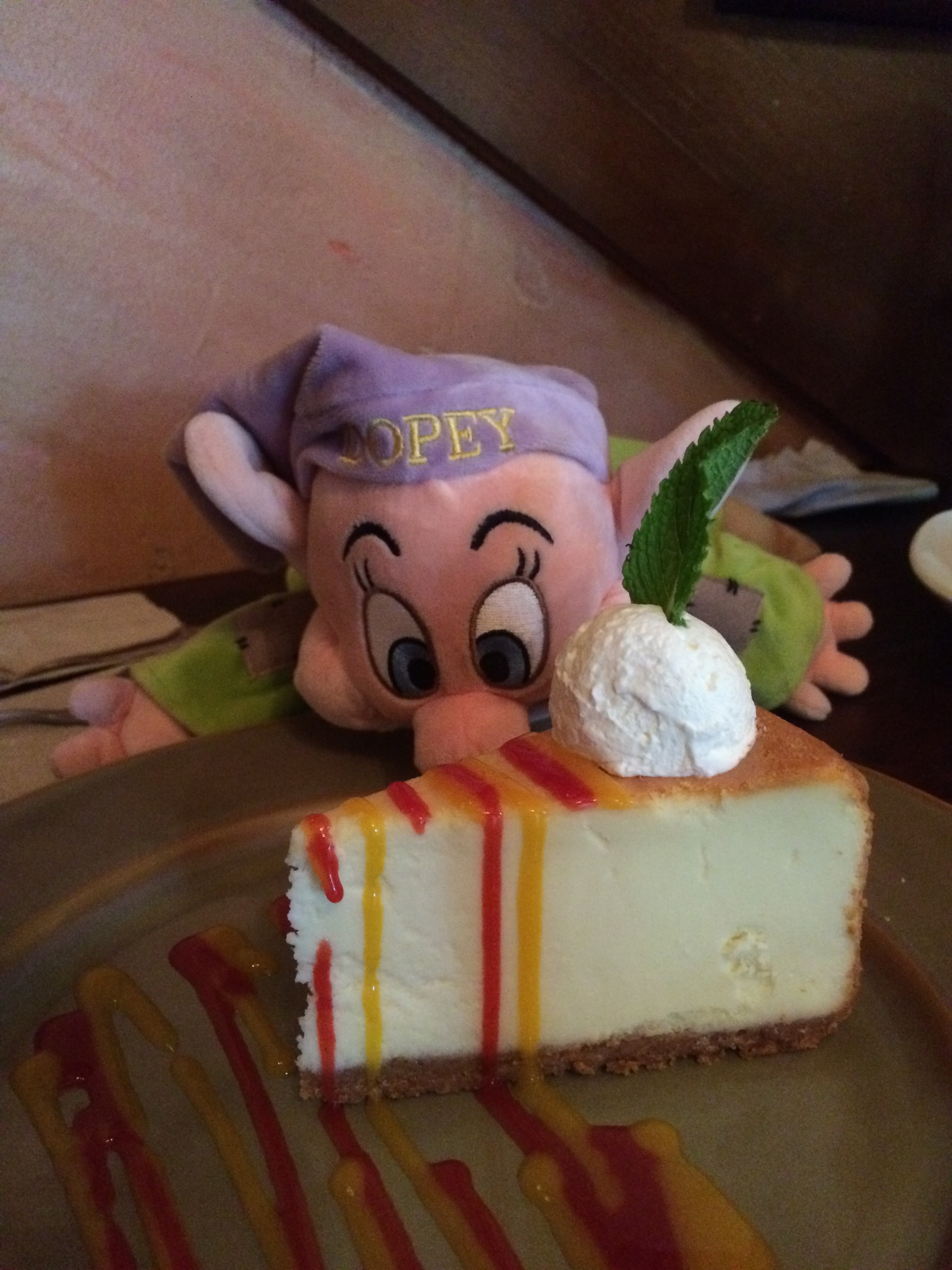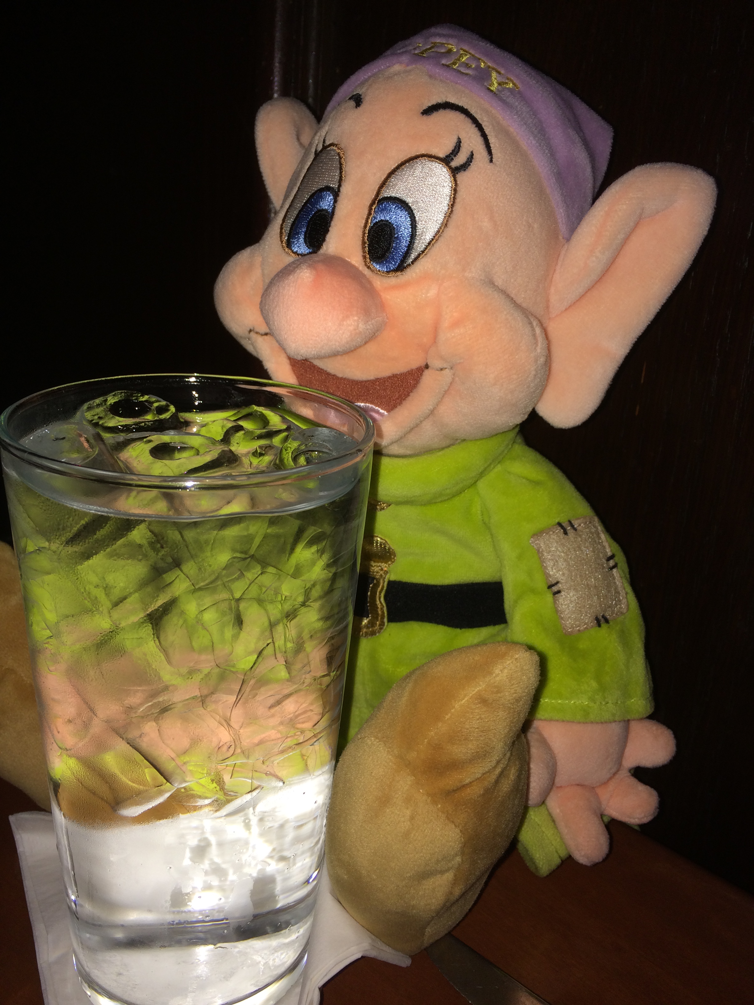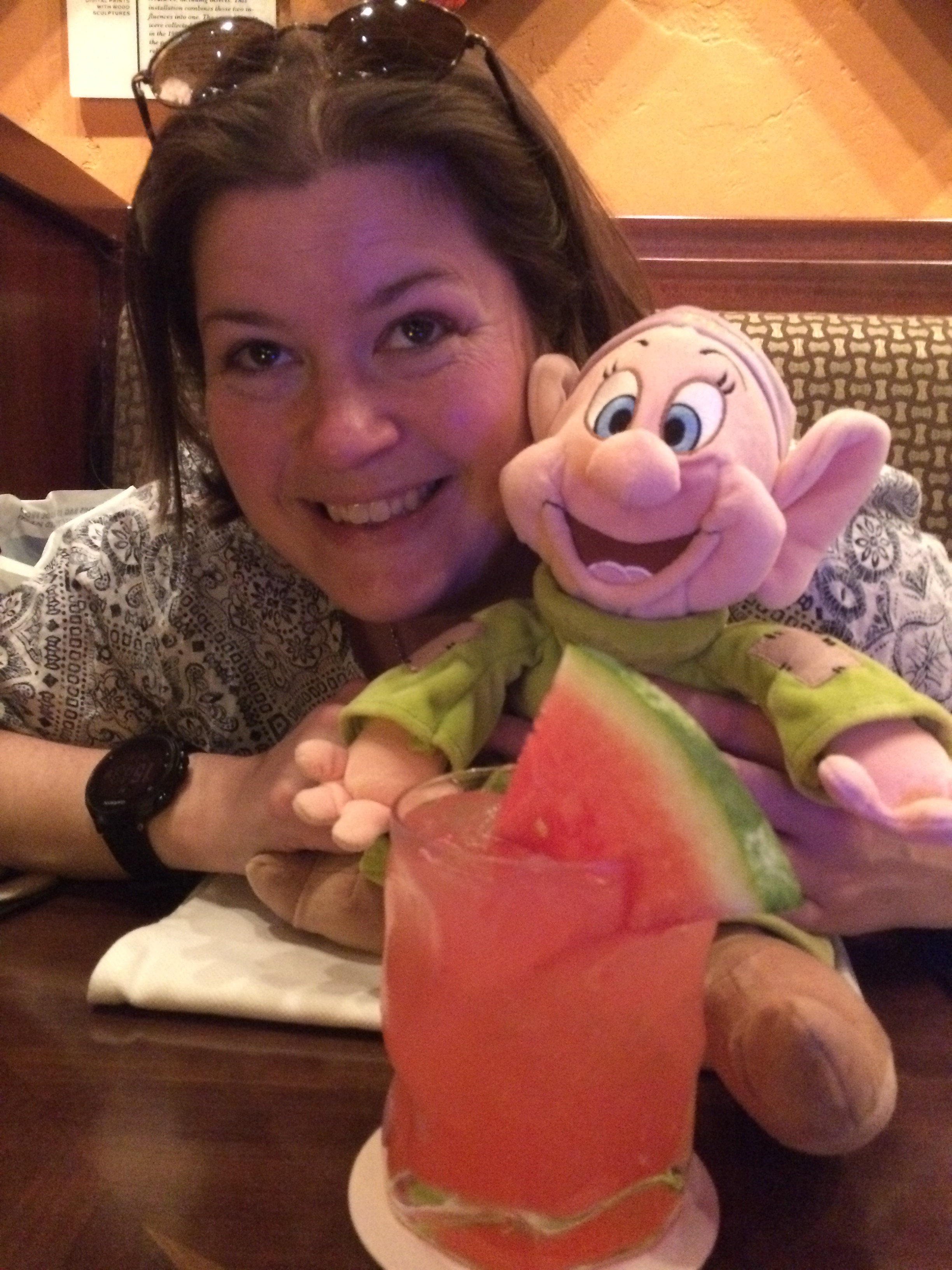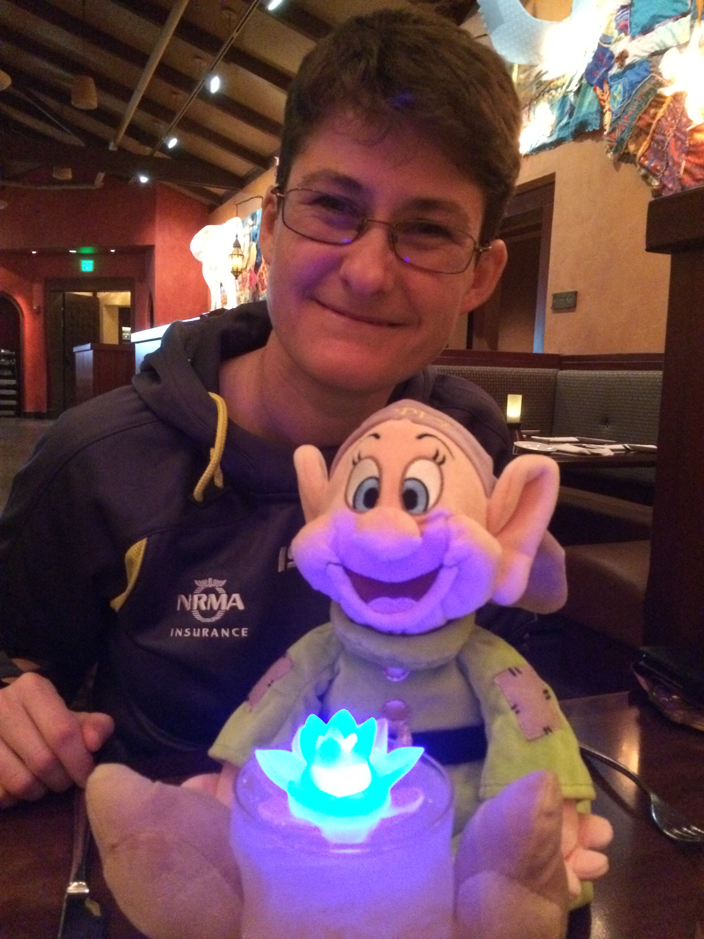 Our celebrations started with a long sleep like most good celebrations do. Then we went for a lovely dinner at the California Grill which is located at the top of our hotel. It was a lovely celebration meal with gorgeous food, a blissful glass of wine and gallons and gallons of water. We watched the Magic Kingdom fireworks from the viewing area at the top of the hotel, had chocolate cake and went to bed. After that Dopey joined in.