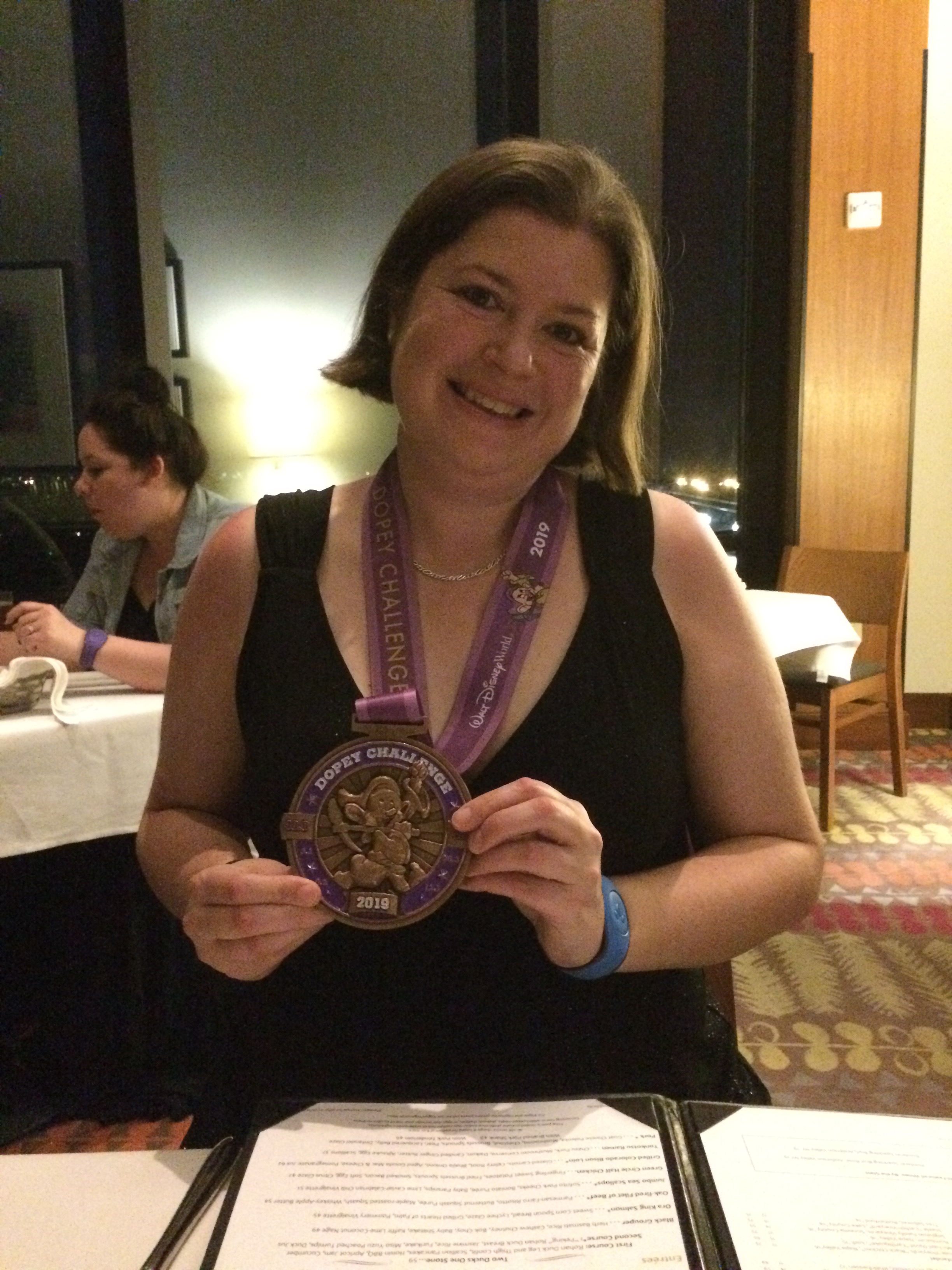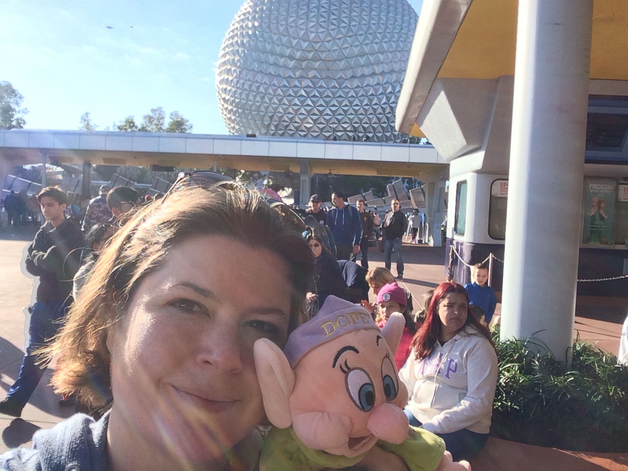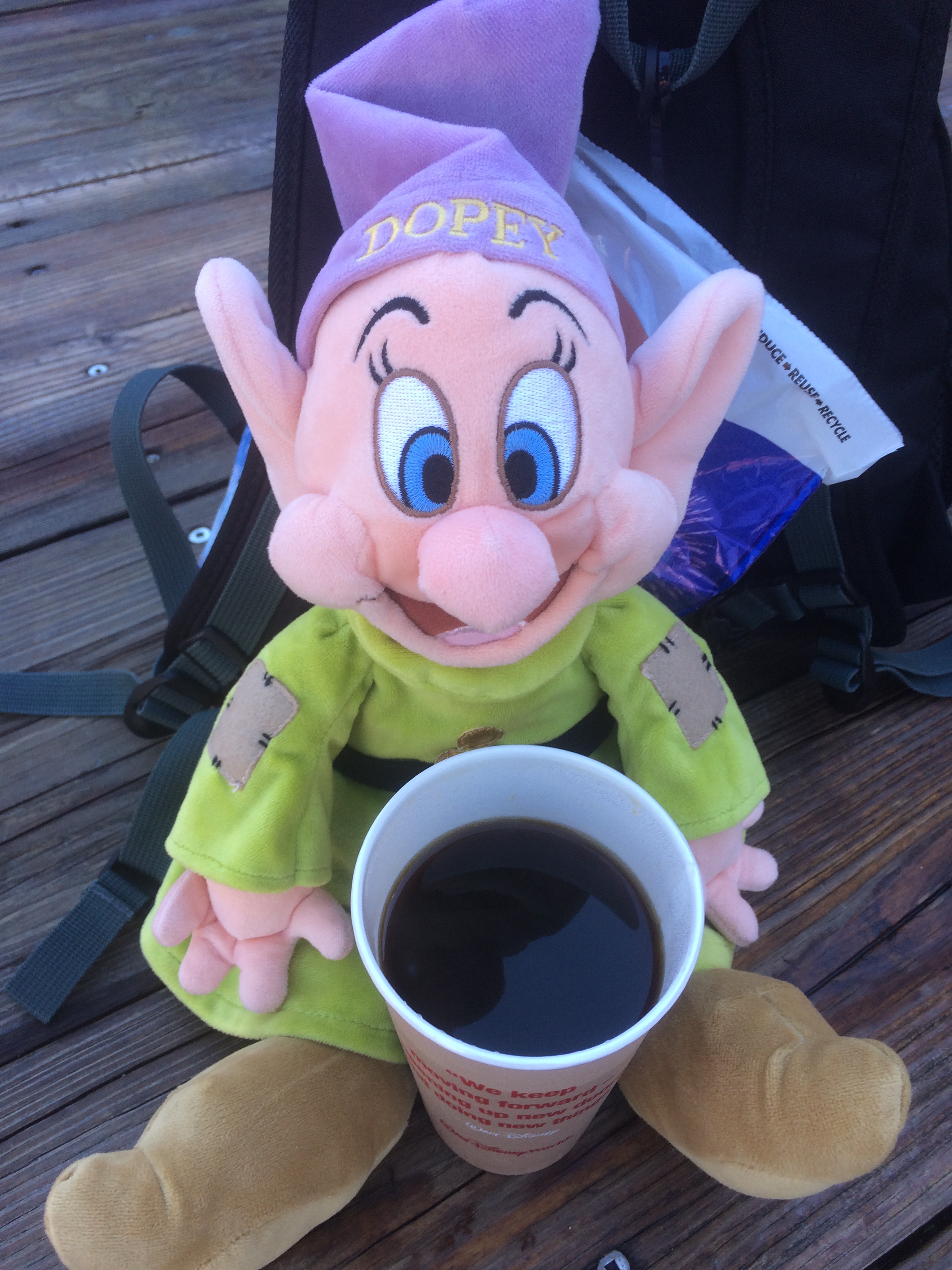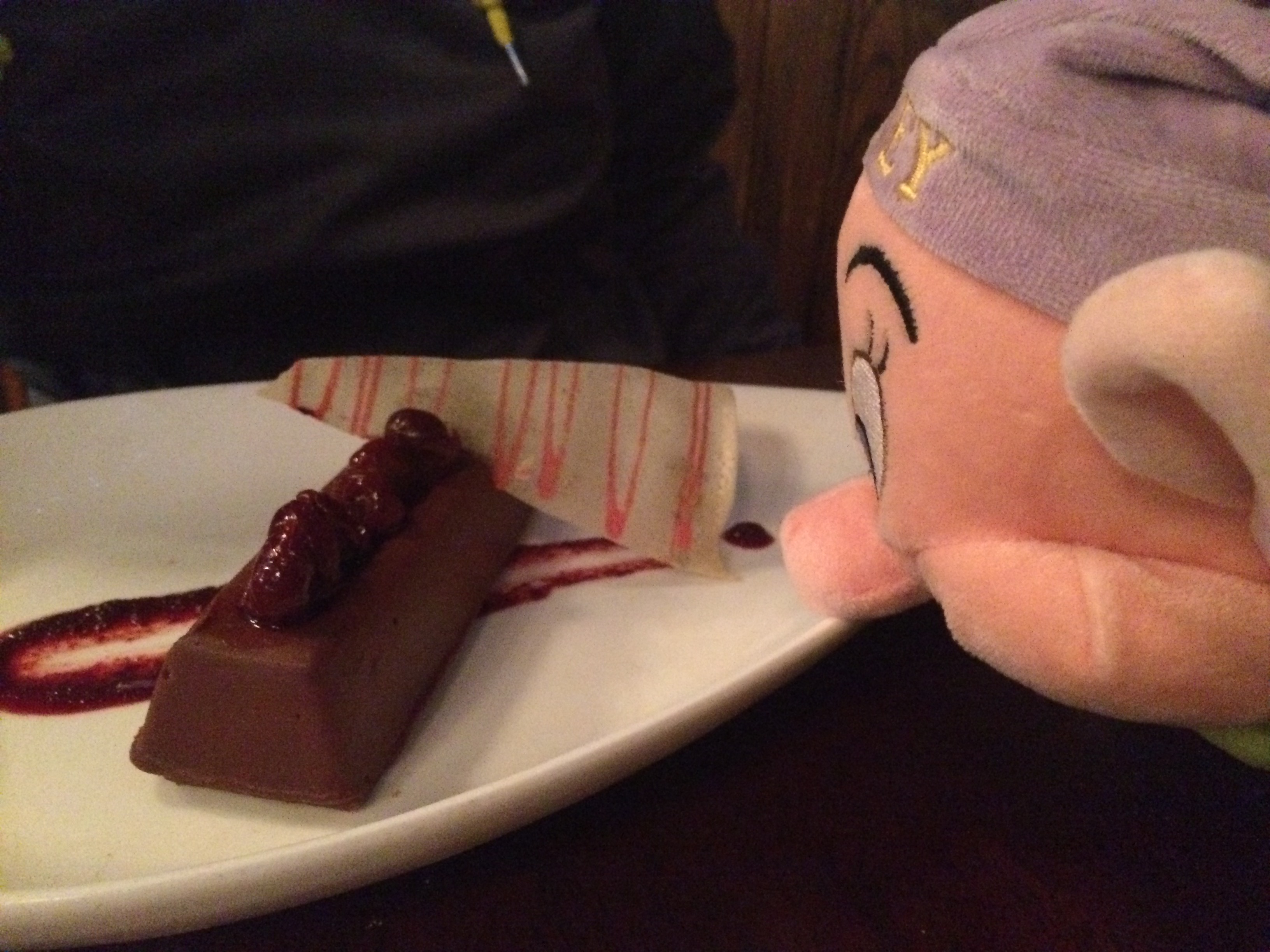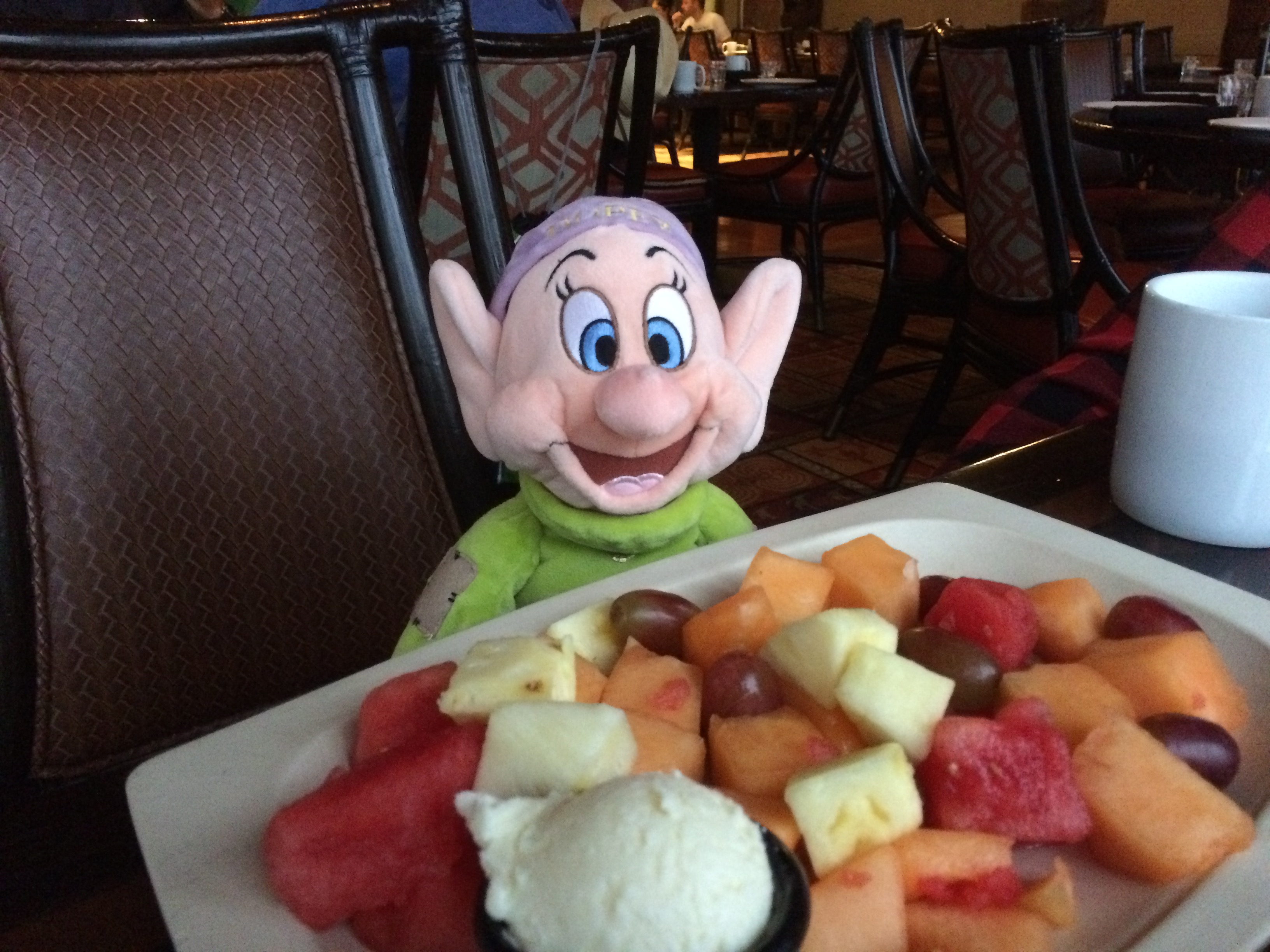 Our celebrations started with a long sleep like most good celebrations do. Then we went for a lovely dinner at the California Grill which is located at the top of our hotel. It was a lovely celebration meal with gorgeous food, a blissful glass of wine and gallons and gallons of water. We watched the Magic Kingdom fireworks from the viewing area at the top of the hotel, had chocolate cake and went to bed. After that Dopey joined in.