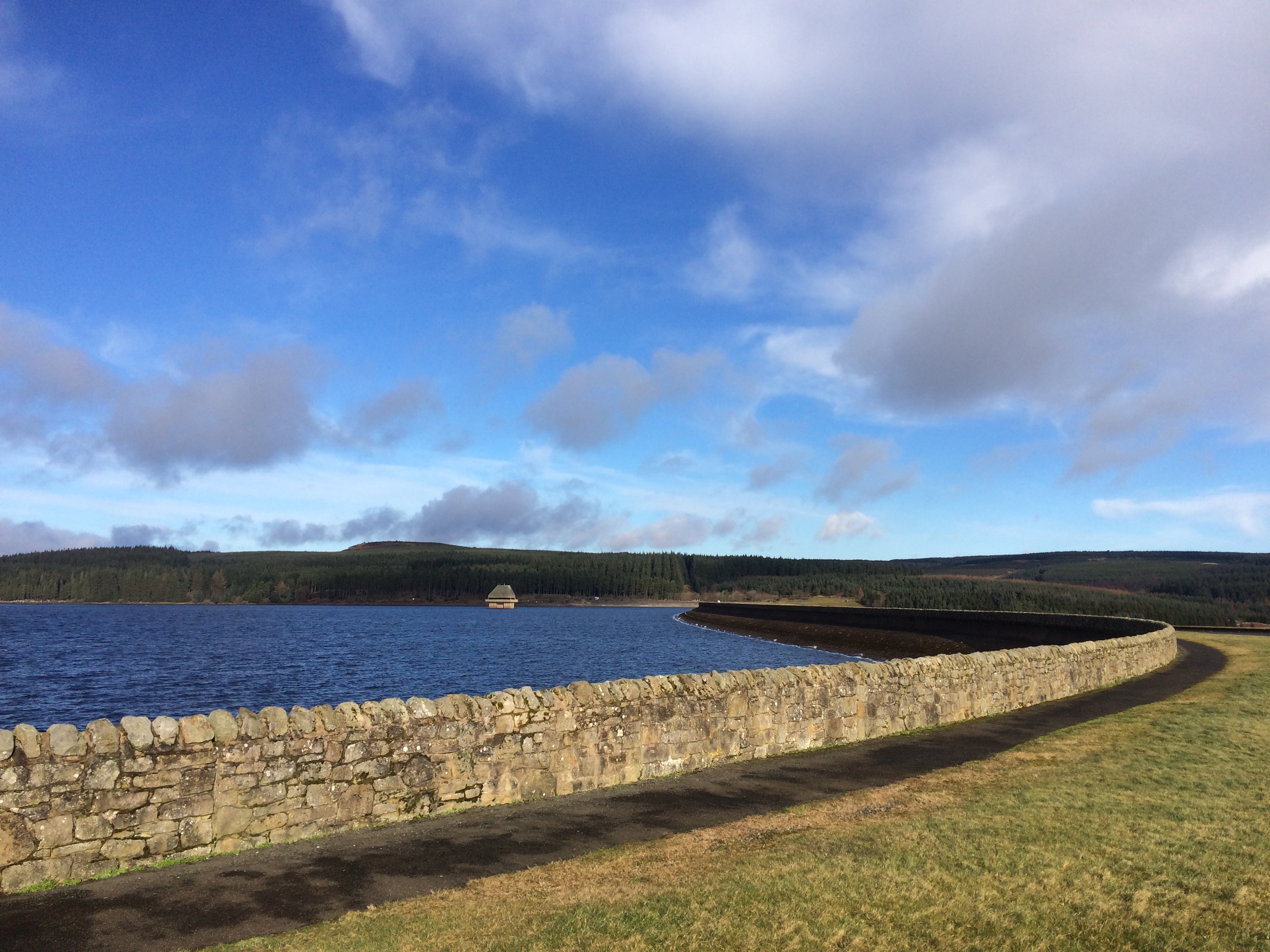 I walked a few more of the hills on Sunday. I nearly had a meltdown in mile 2 because I seemed to be really feeling the uphill pull on that section. I got over myself and actually ran almost all of the first 5 miles which took us to the Tower Knowe visitor centre which was closed but did have some toilets that were open. From there it was another mile and a half to the other side of the dam so we jogged across, had a little break as we marvelled at the views and then set off back.