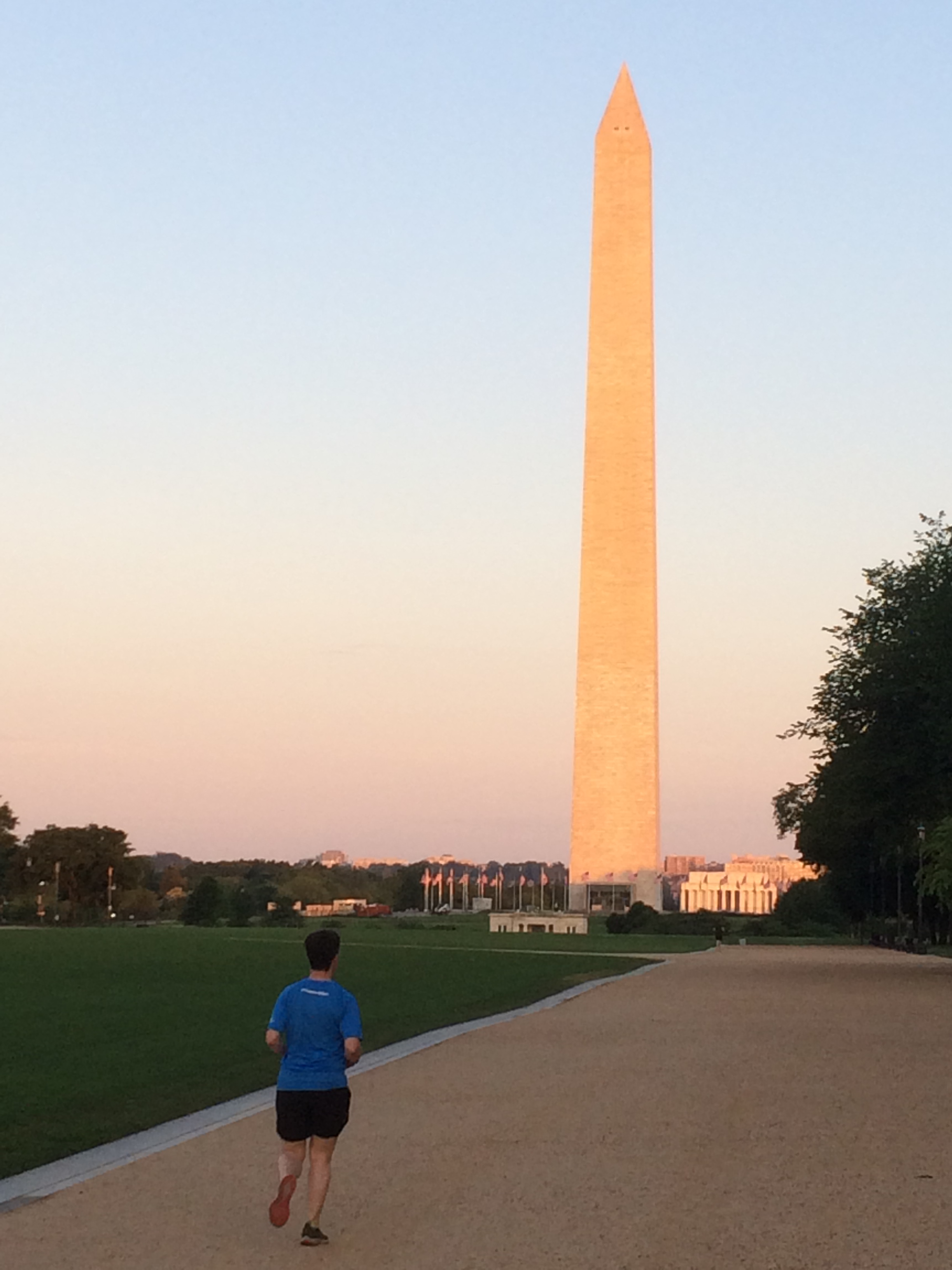DC was hot and humid and I wasn’t at all sure about running but I wanted to. I am beginning to think that tourist running is just the best way to see a place and get a feel for it. So the first morning, with the time difference on our side, we headed out early – before sunrise although there was plenty of light. We ran up the hill from the hotel towards the Capitol Building and then turned right from there towards the National Mall. We ran, stopping at the crossings – this is rather a thing in DC, the traffic lights seem to take forever to change for the pedestrian signal. On this occasion though it was a welcome break. It wasn’t yet hot or that humid but enough for a film of sweat to form – the kind that makes you feel slightly smug.