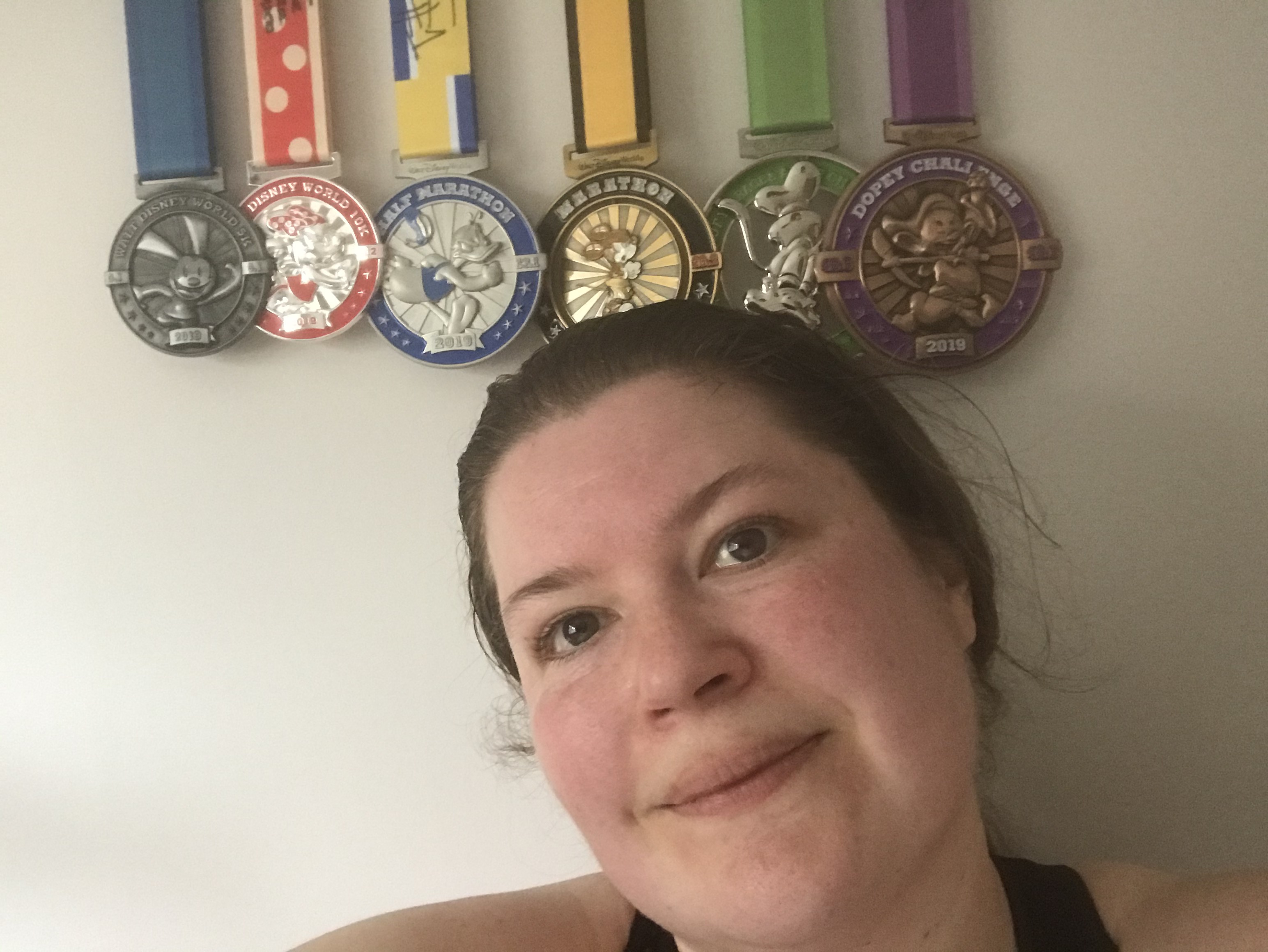 I put music on for today’s session. We moved the CD player into the back room (where we have all our exercise stuff) last weekend and I wonder if it might be a game changer. There was random dancing in the rest breaks yesterday which just made the whole thing fun and somehow feel less like just exercise and more like just being silly but today the music actually really helped with the workout. I noticed it most on the upper body exercises or those that require some sort of upper body strength. For example for both the Mountain Climbers and the Plank Jacks I can’t normally do 35 seconds before my shoulders cave in – Or I can do so if they are the first exercise to really put pressure on shoulders but not if they come later in the sequence. For the first round today I managed the Mount climbers by just focusing on the music and the rhythm of that. I managed the Plank Jacks with just one brief shake off of the arms in the middle. In the 2nd round I had to shake off the arms for both once but that was the only break and it was less than 5 seconds. I suppose the music just shifts the focus or gives the brain something else to hang on to and makes it easier to just push through. It helps build that mental strength I always think I don’t have. When running outside it’s easier to distract yourself and keep going. In our little exercise room I am finding other ways, music is clearly one but facing the Dopey medals on the wall helps to motivate to work just that little bit harder, facing the generic medal hanger with everything else on serves as a reminder that I can do this and sometimes watching the birds come and go to the bird table on our back fence is a nice distraction.