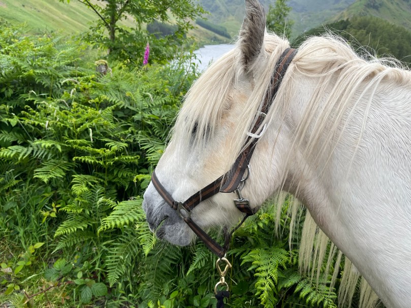 After lunch we headed up. This was a little more challenging and my lungs weren’t playing ball. It felt like I couldn’t really get any air in but Prince was patient with me and we stuck together and made it bit by bit with little stops where I focused on breathing and he focused on eating. I was slightly conscious of people waiting for me but everyone was really patient and the ponies happy to graze. There were one or two bits where Prince had ideas about where he would go that didn’t really match the path and I ran out of rope so left him too it and there was a steepish section where he was too fast for me.